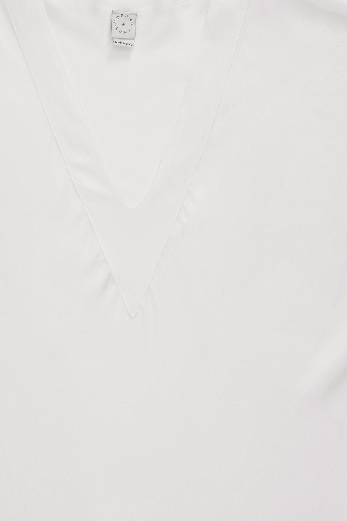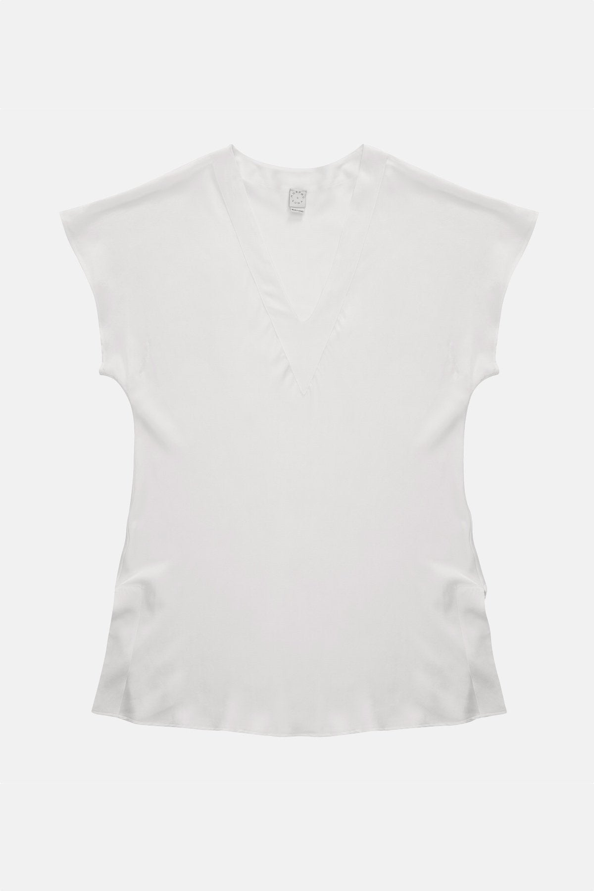 Crafted from beautiful sand-washed silk, our Annie nightdress is perfect for a lazy Sunday morning or with sandals and a hat on a beach. This luxuriously smooth nightdress has a stylish v-neck and wide short-length sleeves for a simple yet flattering t-shirt silhouette. The thigh-skimming length and side slits combined with the relaxed silhouette exude comfort and subtle refinement for a dreamy night's sleep.