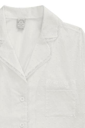 Our super-soft cotton plumetil long-sleeved Cara pyjama set can be paired with any of our long-length robes for a lazy Sunday morning or can be worn with sandals on a balmy day for a bold and coordinated look. The shirt features curved notch lapels and a practical chest pocket, while the loose-fit shorts have an elasticated waistband for comfort and flattering definition. The set perfectly combines masculine tailoring in the relaxed silhouettes with feminine detailing in the exquisite lace trims and mother-of-pearl branded buttons - a theme that runs through all of Morpho and Luna's collections. Available in snow and black.