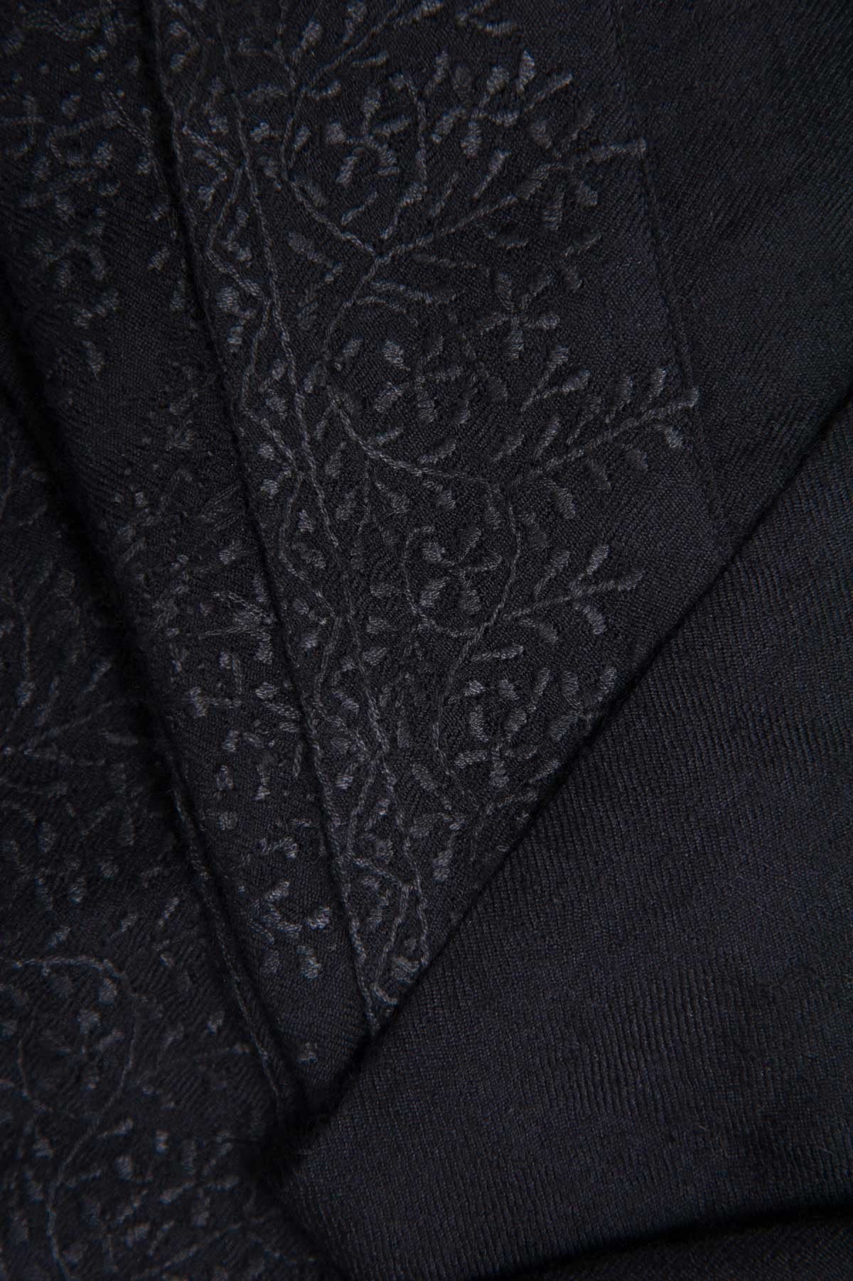 Made from 100% pashmina cashmere. This fabric has been hand woven in Kashmir, and as such, it is unusually light and extremely soft. The hand embroidered detailing and luxuriously warm fabric make it perfect for all seasons, year after year.