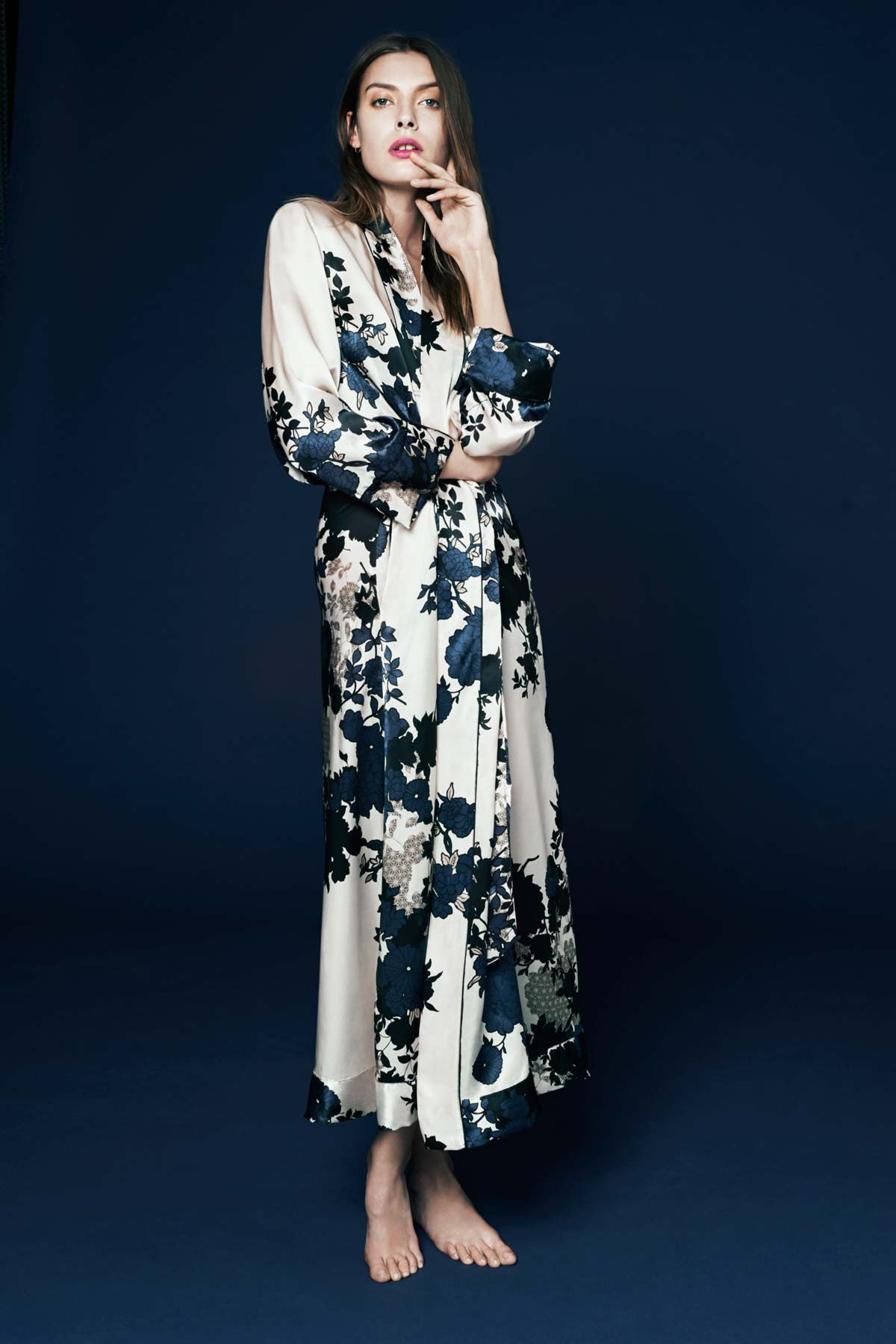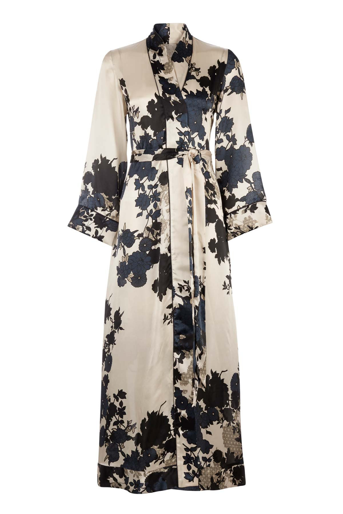 With its striking all-over print, this long-length robe is made from 100% Italian silk, and layers perfectly with any of our elegant silk separates or nightdresses.