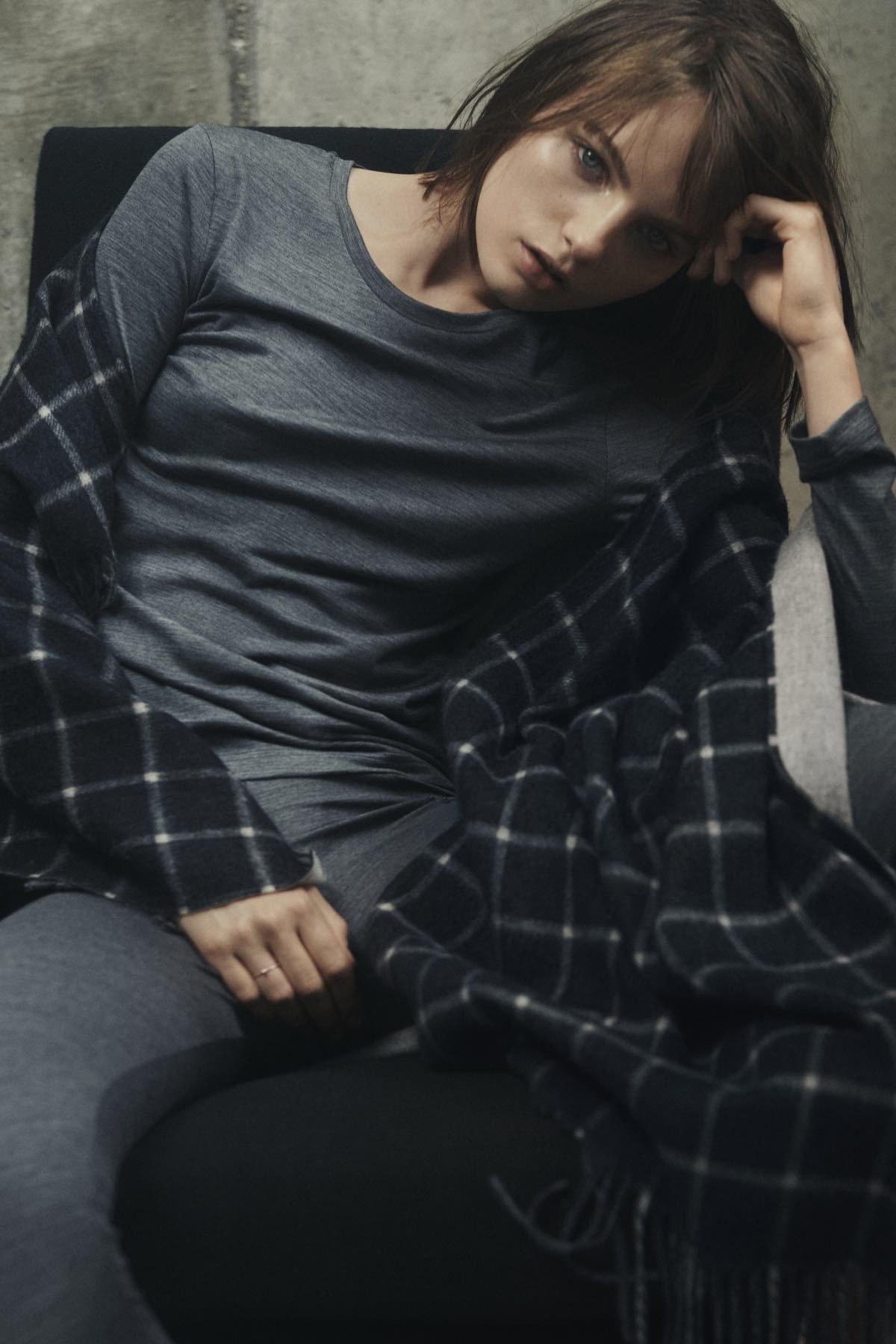 Our luxurious cashmere Lupo poncho is a versatile must-have addition to your wardrobe. Wrap over our Remy leggings and Bettina t-shirt on cold winter evenings of elegant lounging for a dose of much-needed warmth and comfort. Alternatively, they are a cosy combination to wear while travelling, ensuring you arrive at your destination stylishly and comfortably. Featuring super soft and reversible fabric with slate and pebble hued checks on one side and a solid pebble shade on the other and these two colours blend into fringed edges.This versatile piece exudes simplicity, practicality and subtle refinement.