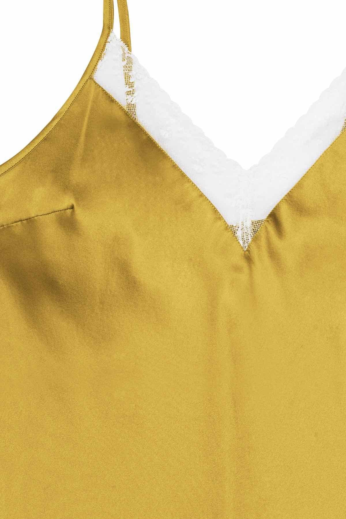 This luxe camisole is made from 100% sand-washed silk and framed with delicate Italian lace around the flattering neckline and at the hem. It has a free-flowing shape and skinny adjustable shoulder straps, exuding subtle refinement. Pair it with our matching Bina shorts for a perfect combination for a lazy Sunday morning of lounging. Alternatively, team it with jeans and a blazer for a refined day look. Available in night, gold, and poudre hues.